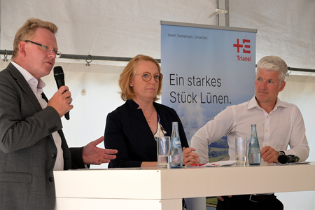 Den „Trianel Talk Lünen“ eröffnete der Bürgermeister der Stadt Lünen, Jürgen Kleine-Frauns, und dankte der Betriebsmannschaft des Kraftwerks für den Strom „made in Lünen“. Nach zwei Impulsen von Dr. Christian Untrieser, MdL, (CDU) und Dr. Andreas Hollstein, Geschäftsführer der Landesgruppe NRW im Verband kommunale Unternehmen e.V. stand eine Diskussion rund um Versorgungssicherheit, Klimaschutz und Zukunftsperspektiven im Fokus, an der neben Sven Becker und Dr. Andreas Hollstein auch Dr. Stefanie Kesting, Geschäftsführerin & Executive Board Member NEA ENERGY teilnahm.